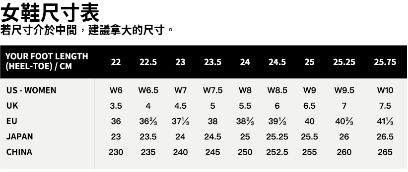建議實際選購時比平常尺碼大一號,以取得最佳貼合度。